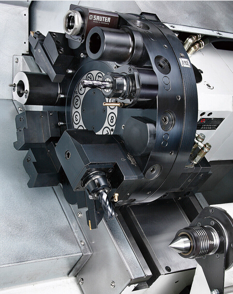 - Equipped with a dedicated servo motor for turret rotation and indexing, ensuring rapid tool changes and precise positioning.